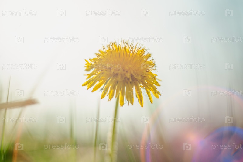 Весенние цветы под ярким солнцем среди зелени, избирательный фокус, боке