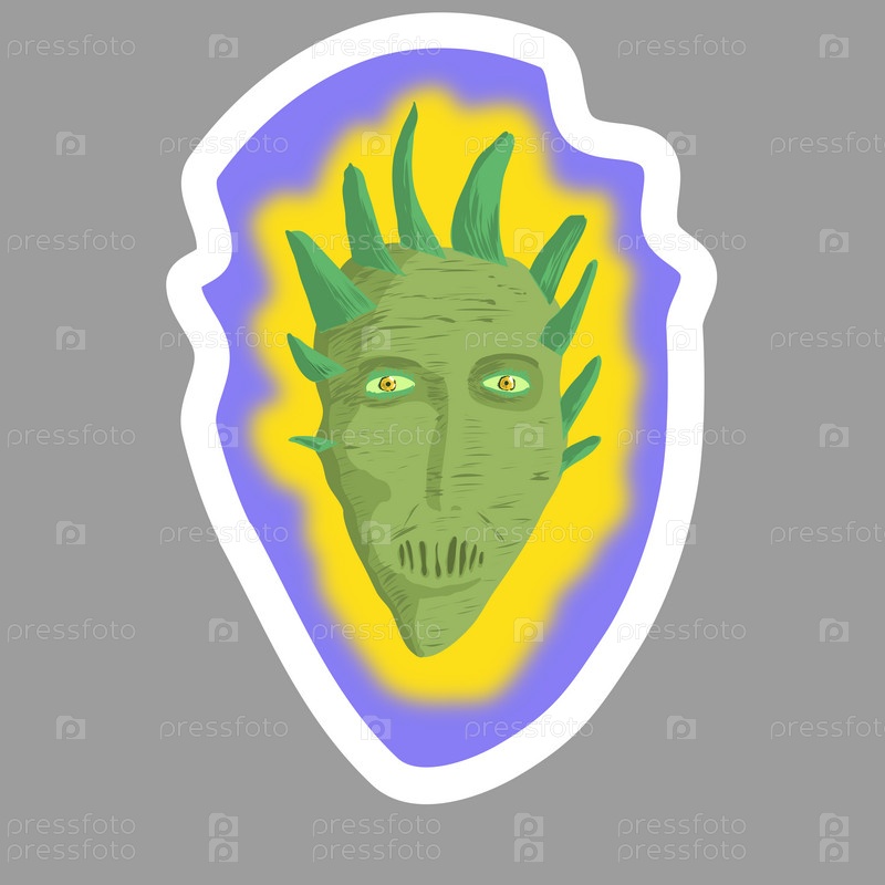 Хэллоуинская наклейка жуткая корневая голова с придатками на голове