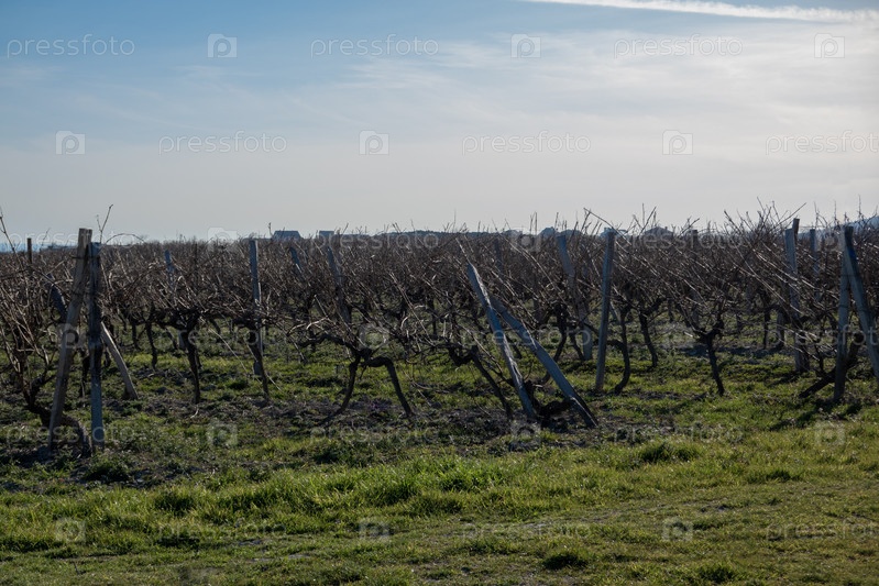 Ряды виноградников ранней весной на Кубани