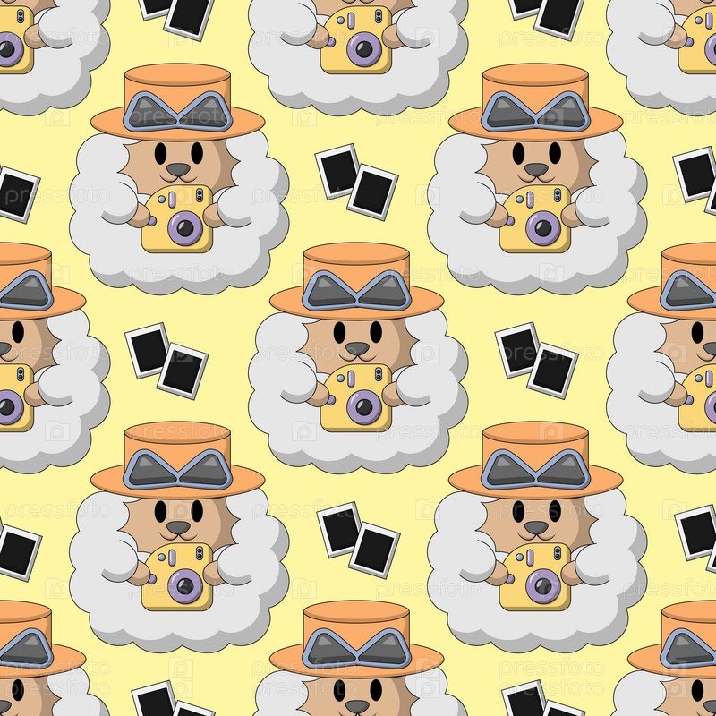 Бесшовный узор с милыми летними овцами с мгновенной камерой