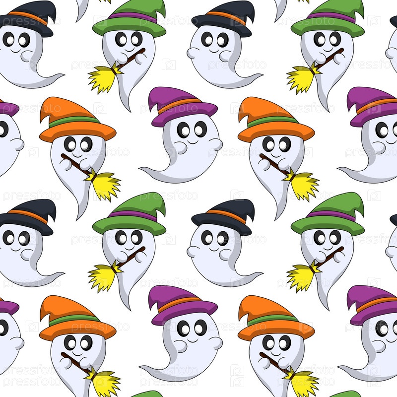 Бесшовный узор с милой мультяшной ведьмой-призраком