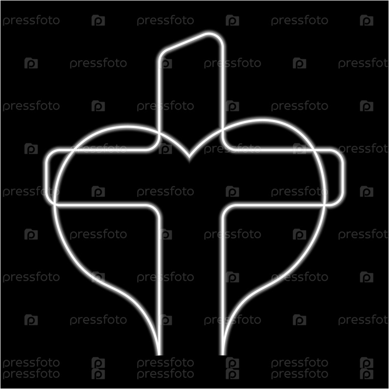 Христианский крест и сердце в линейном неоновом эффекте