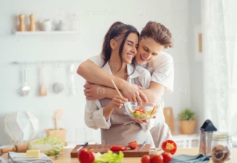 Влюбленная пара готовит настоящую еду