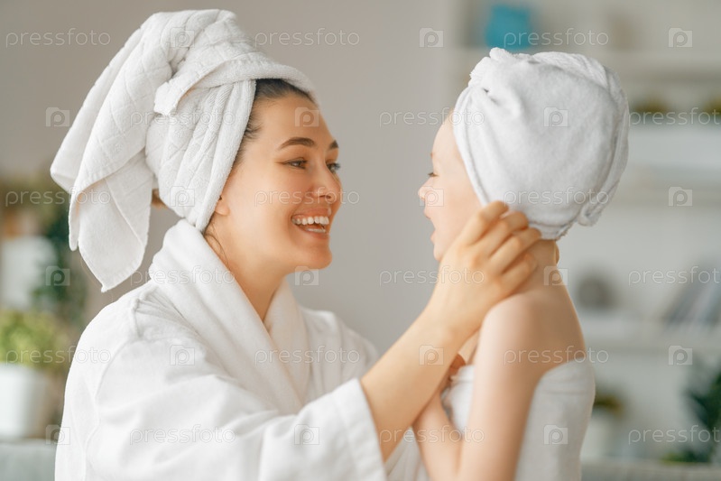 Мать и дочь после ванны