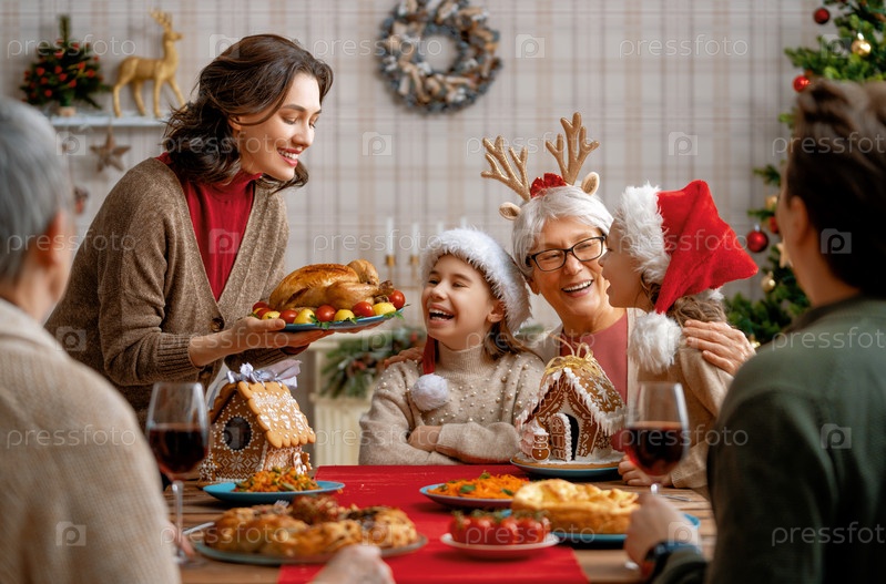 Семья празднует Рождество