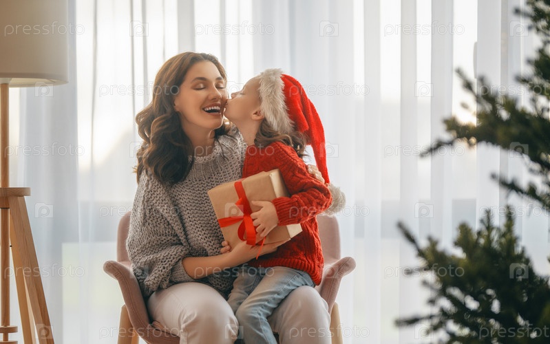 Семья празднует Рождество