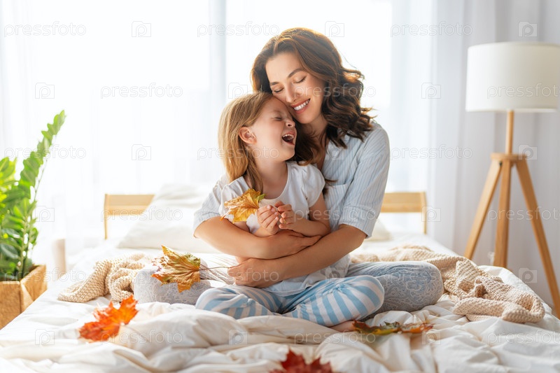 Девочка и мама наслаждаются солнечным утром
