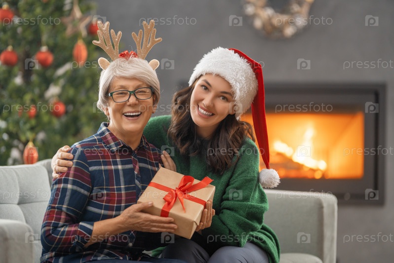 Семья празднует Рождество