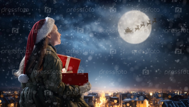 Девушка с подарком на Рождество