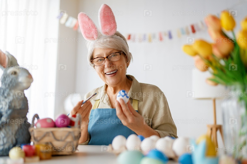 Старшая женщина красит яйца