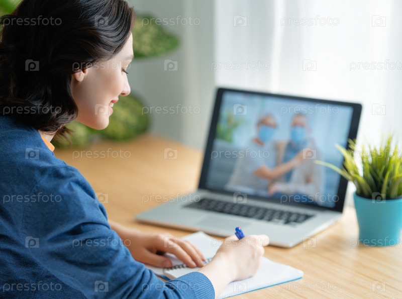 Женщина использует компьютер для удаленного разговора