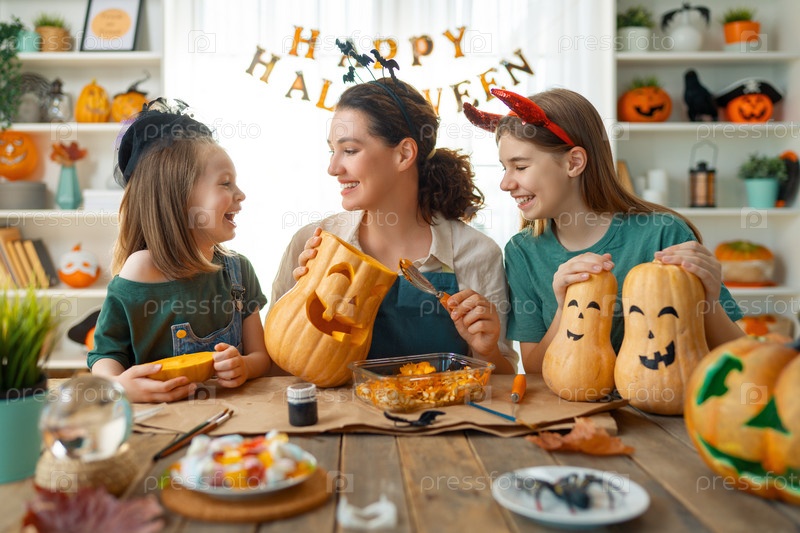 Семья готовится к Хэллоуину