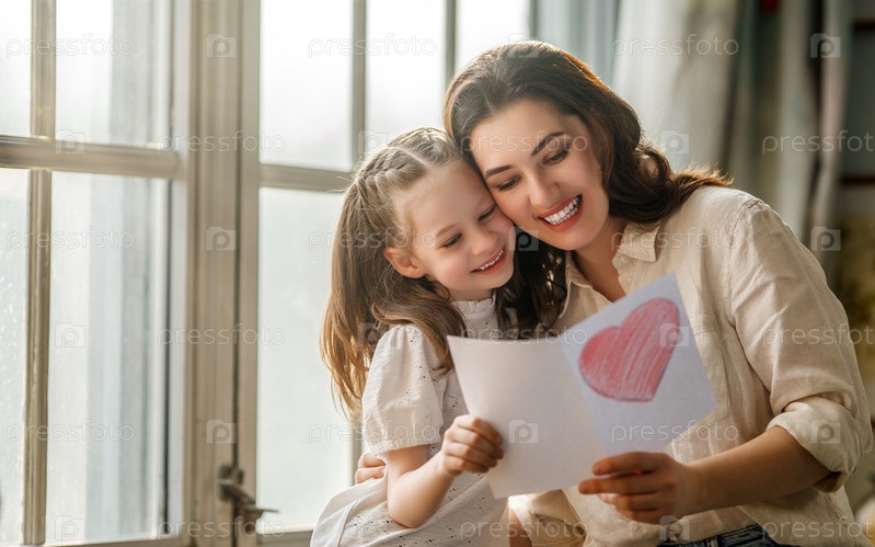 Дочь дарит матери открытку