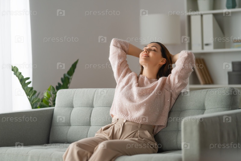 Женщина отдыхает на диване