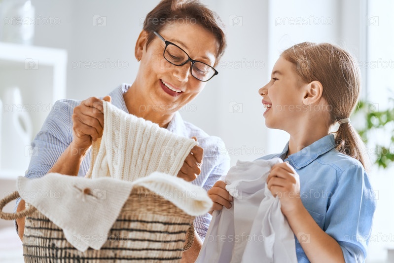 Семья стирает дома