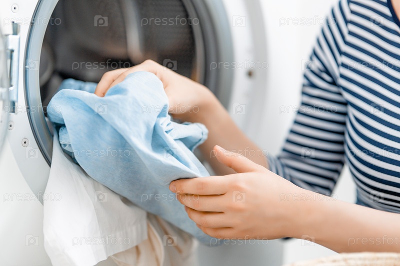 Женщина стирает дома