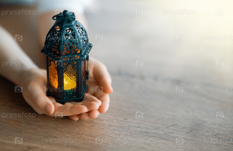Орнаментальный арабский фонарь с горящей свечой