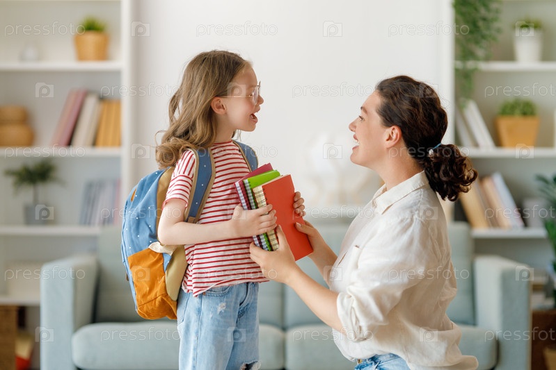 Счастливая семья готовится к школе