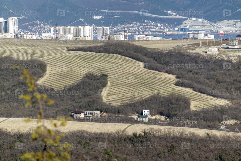 Ряды виноградников ранней весной на Кубани