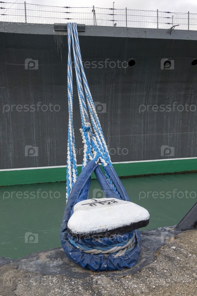 Завязали веревку на узле вокруг швартовного кнехта. Морская тема фон