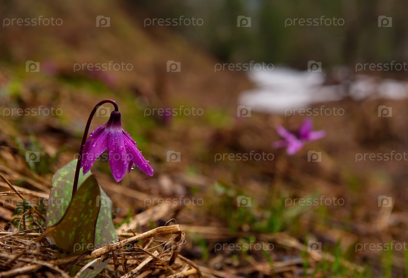 Россия. Юг Западной Сибири, Кузнецкий Алатау. Сибирские весенние цветы (кандык) на южных склонах гор вдоль реки Томь