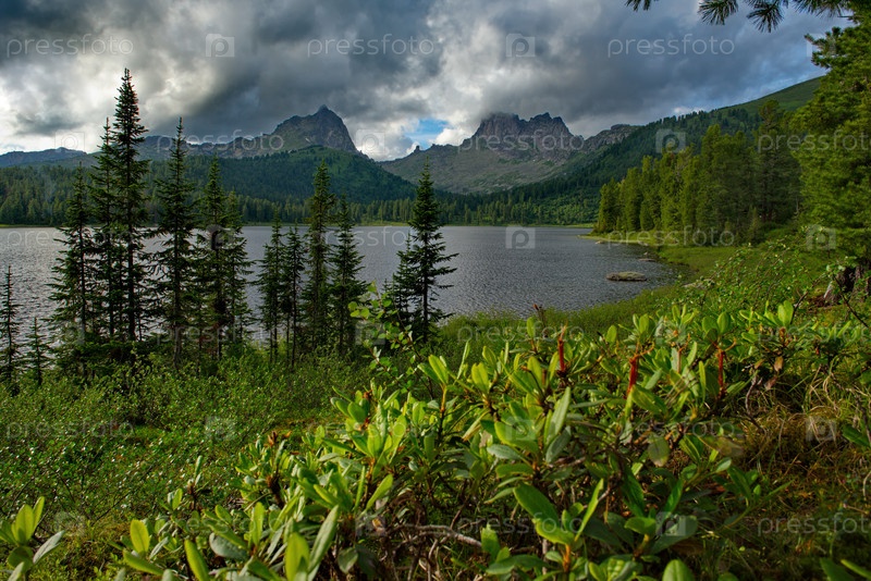 Россия. Красноярский край. Восточный Саян. Цветущий берег озера Светлое в природном горном парке "Ергаки"