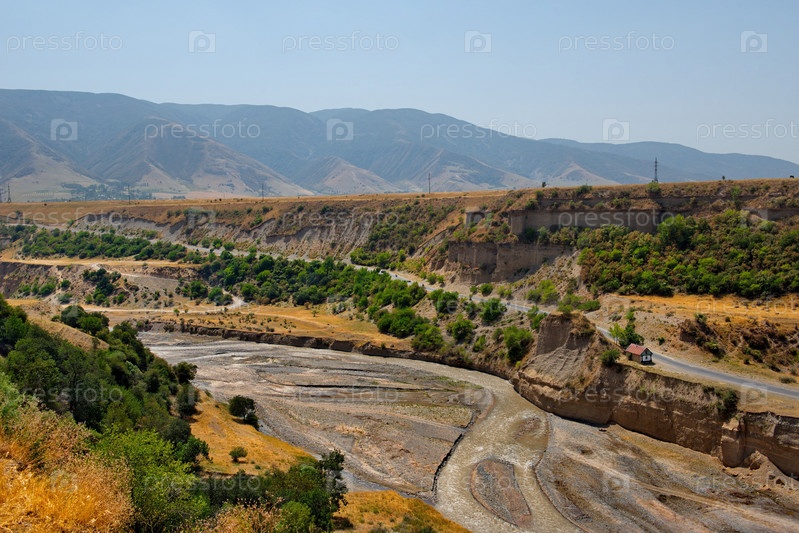 Киргизия. Панорама долины реки Нарын вдоль Памирского тракта