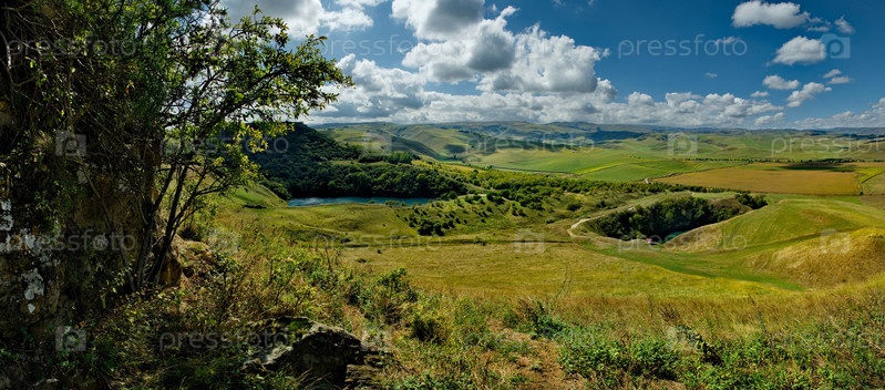 Россия. Кабардино-Балкария. Вид на Кавказские горы с края карстового обрыва