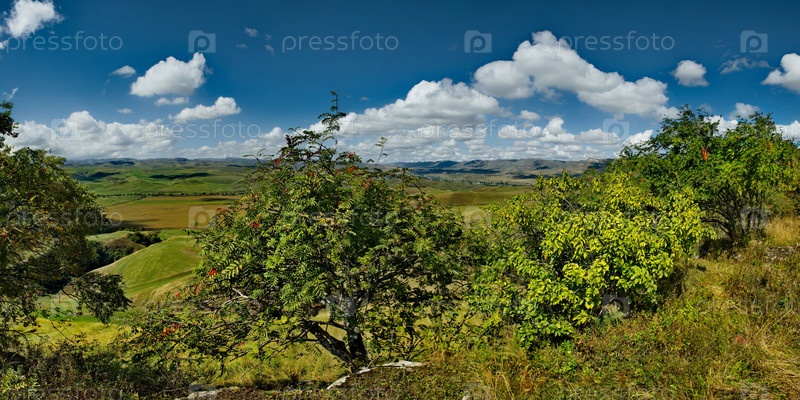 Россия. Кабардино-Балкария. Вид на Кавказские горы с края карстового обрыва