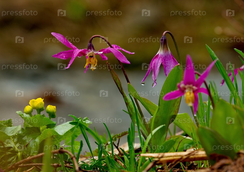 Россия. Юг Западной Сибири, Кузнецкий Алатау. Сибирские весенние цветы (кандык) на южных склонах гор вдоль реки Томь