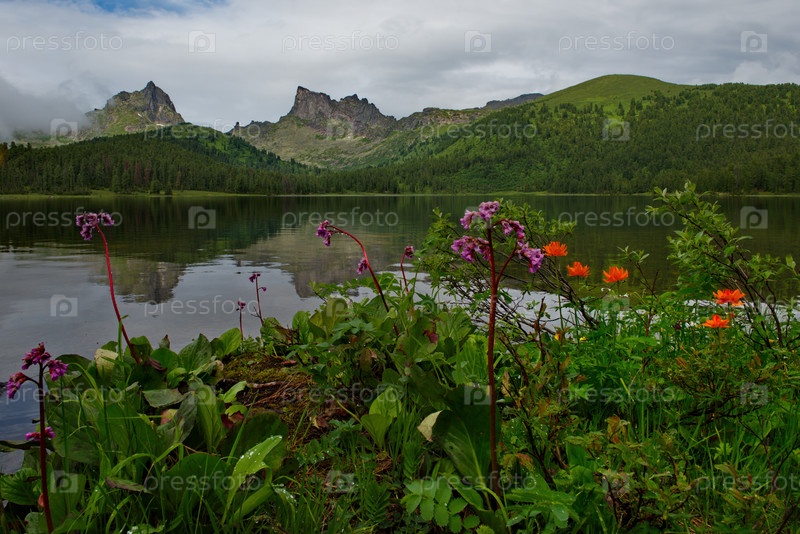 Россия. Красноярский край. Восточный Саян. Цветущий берег озера Светлое в природном горном парке "Ергаки"
