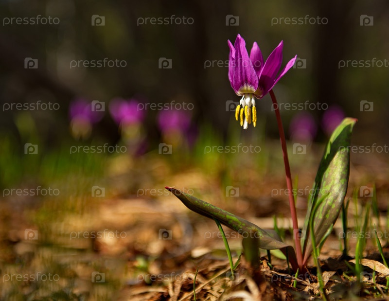 Россия. Юг Западной Сибири, Кузнецкий Алатау. Сибирские весенние цветы (кандык) на южных склонах гор вдоль реки Томь