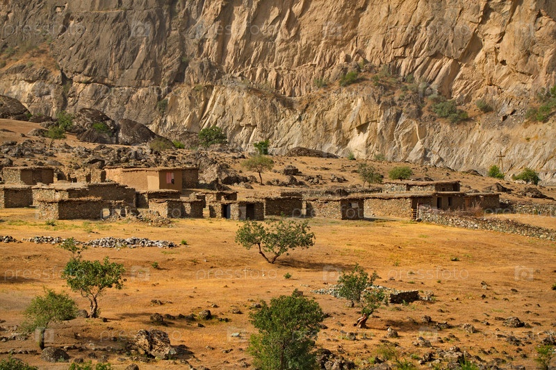 Центральная Азия. Афганистан. Хижины из глины и камня в горной деревне на левом берегу пограничной реки Пяндж