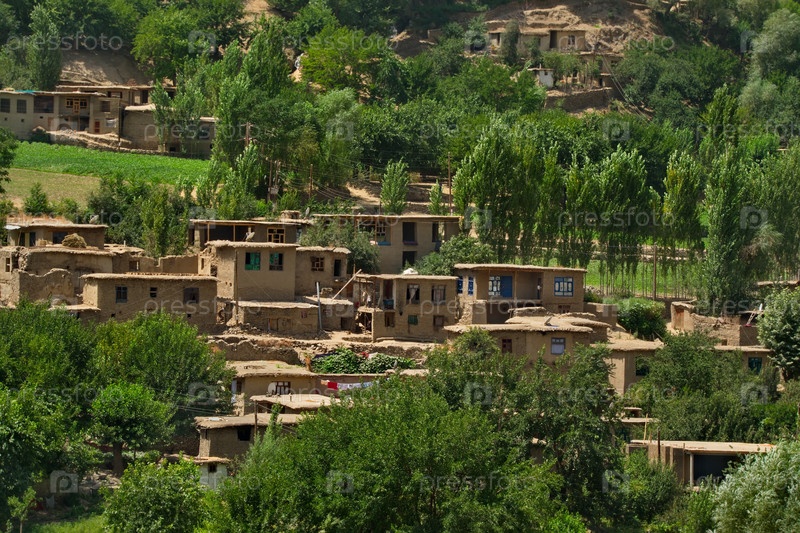 Центральная Азия. Афганистан. Хижины из глины и камня в горной деревне на левом берегу пограничной реки Пяндж