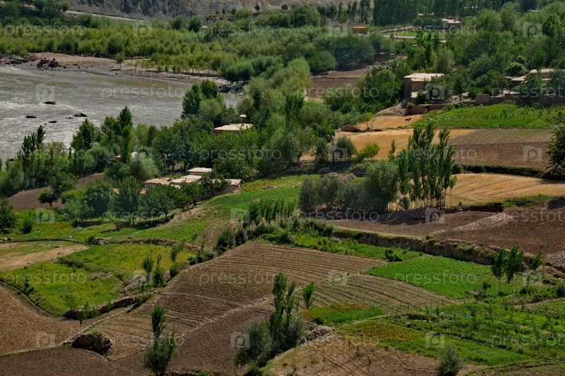 Афганистан. Памирский тракт. Возделываемая каменистая земля на левом берегу пограничной реки Пяндж