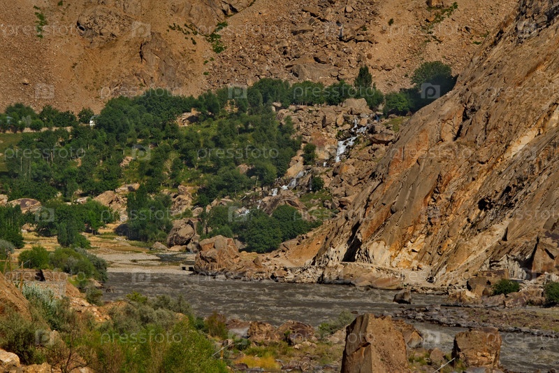 Центральная Азия. Афганистан. Хижины из глины и камня в горной деревне на левом берегу пограничной реки Пяндж