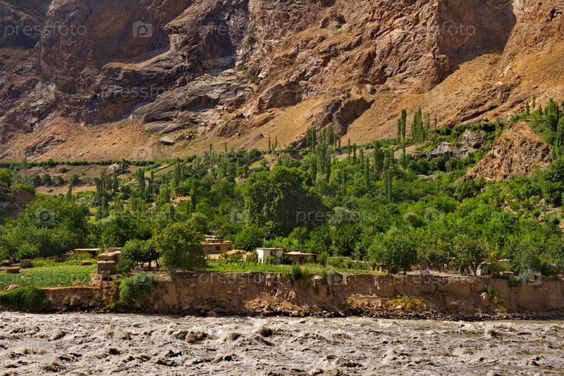 Афганистан. Памирский тракт. Возделываемая каменистая земля на левом берегу пограничной реки Пяндж