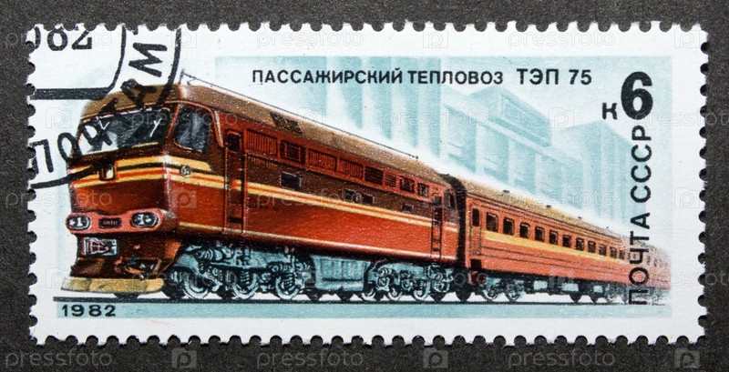 Почтовая марка СССР 1982 год. Пассажирский тепловоз ТЭП 75
