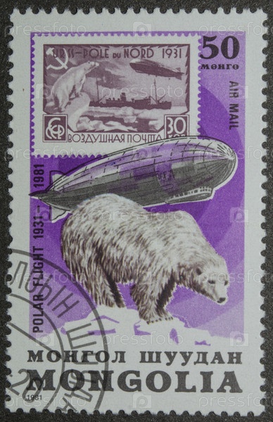 Почтовая марка с гербом Монголия 1981 года Белый медведь (Ursus maritimus)