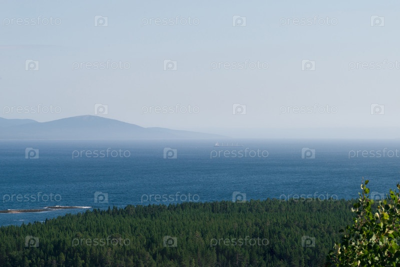 Пейзаж с лесом, морем и горами. Кандалакша, Мурманская область