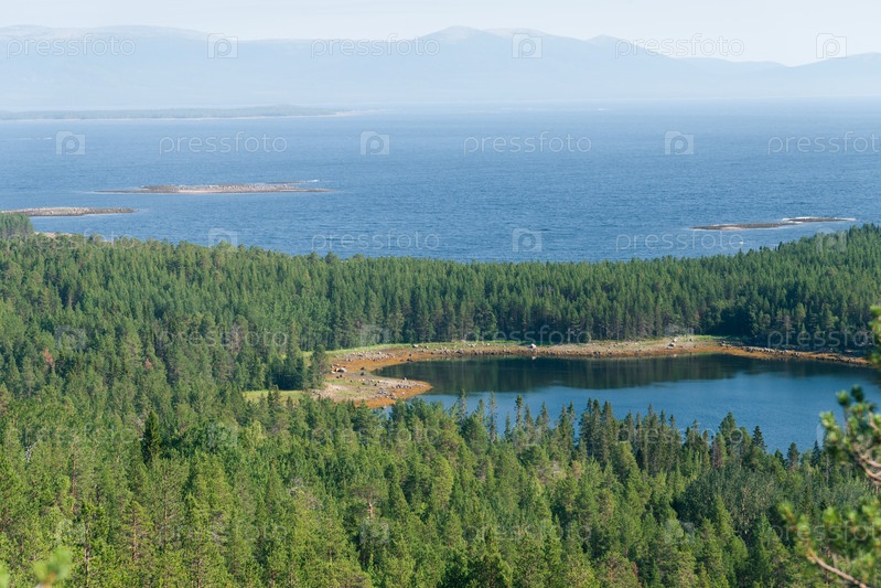 Пейзаж с лесом, морем и горами. Кандалакша, Мурманская область
