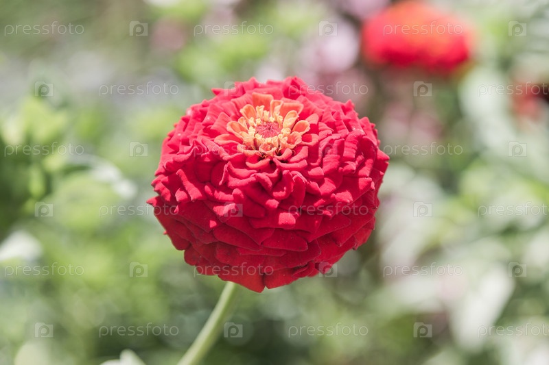 Красный цветок Zinnia elegans (Zinnia violacea) цветёт в саду