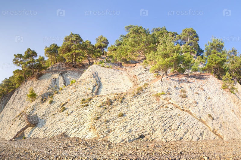 Красивые скалистые утесы на побережье Черного моря. Джанхот, Геленджик, Россия