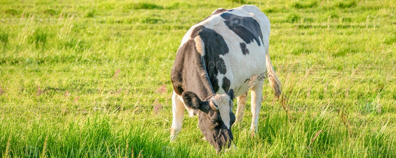 Коровы пасутся на сочном лугу в летний день