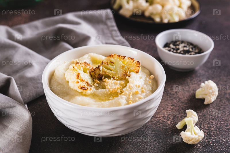 Домашний сливочный суп из цветной капусты в миске на столе