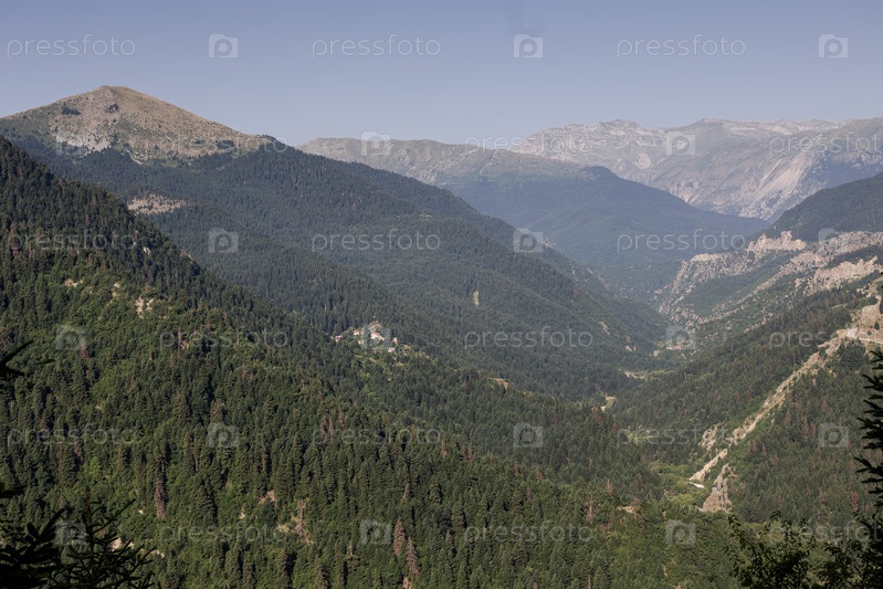 Горы южного Пиндоса (Греция) в летний солнечный день