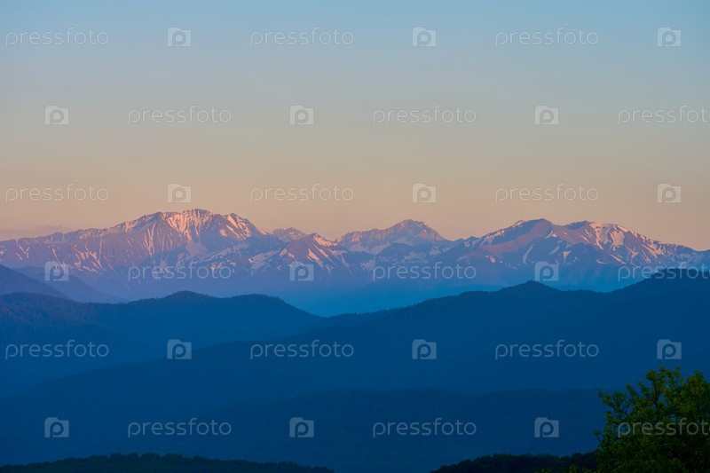 Заснеженные горы Северного Кавказа на закате