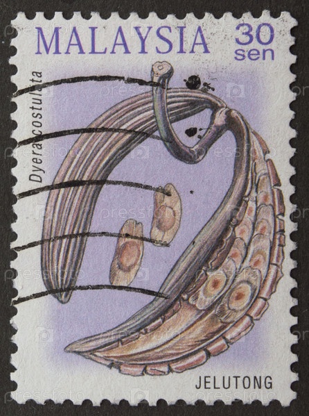 Почтовая марка с выключением Малайзия 2000 г. Диера костулата (Dyera costulata)