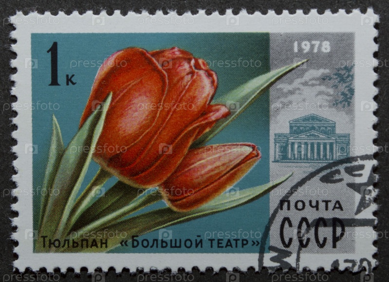 Почтовая марка с гашением СССР 1978 года. Тюльпан «Большой театр»