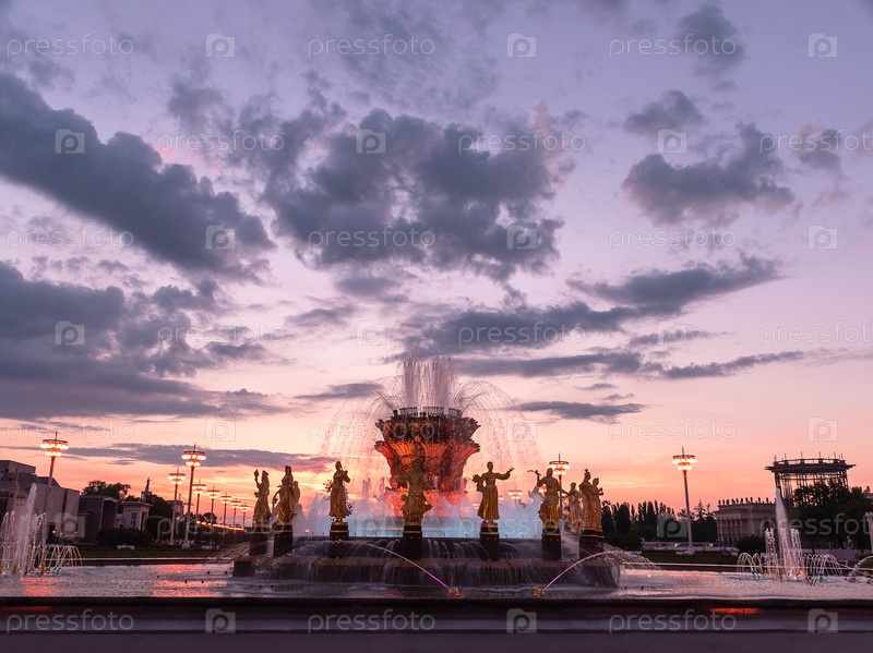 Фонтан "Дружба народов" на ВДНХ на закате